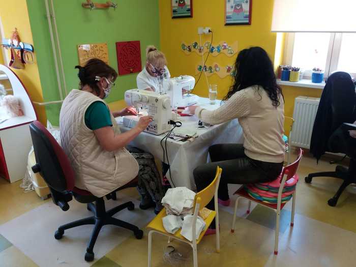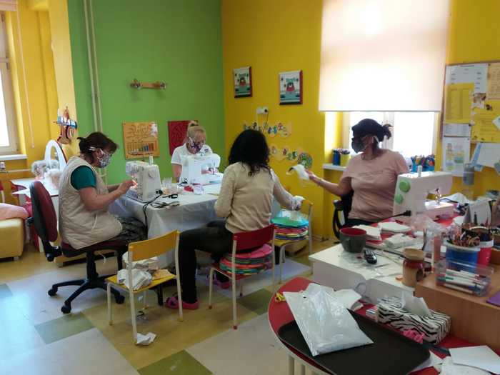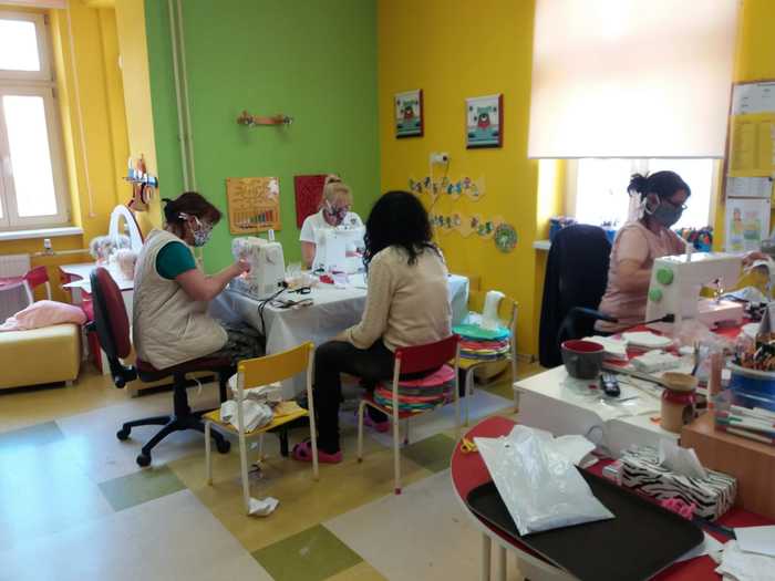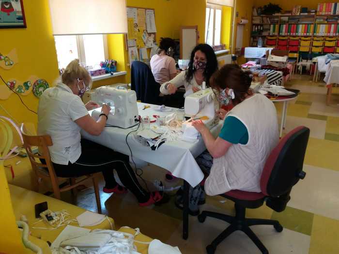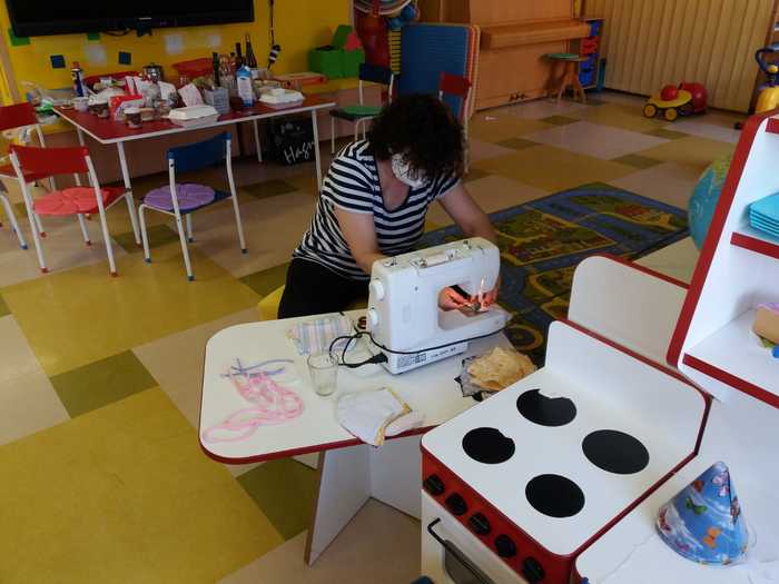 Úvod > O škole > Fotogalerie > Fotogalerie šk. rok 2019-2020 > Zdravíme děti ze školky, šijeme stále dál... #todame✌